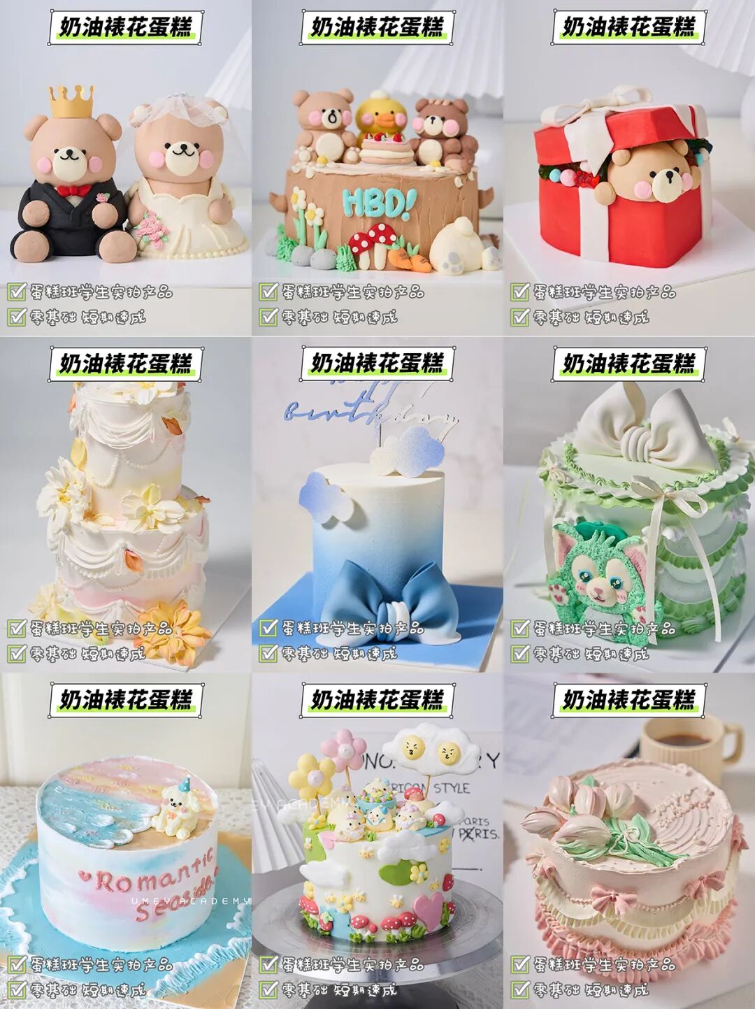 短期裱花蛋糕课程,可以学到私房门店各类款式的生日蛋糕、网红蛋糕、裱花蛋糕、卡通蛋糕、奶油蛋糕...甚至是稍加一些蛋糕装饰与包装,就能提高客单价!简单易上手,短期速成,就能成为蛋糕师啦~~