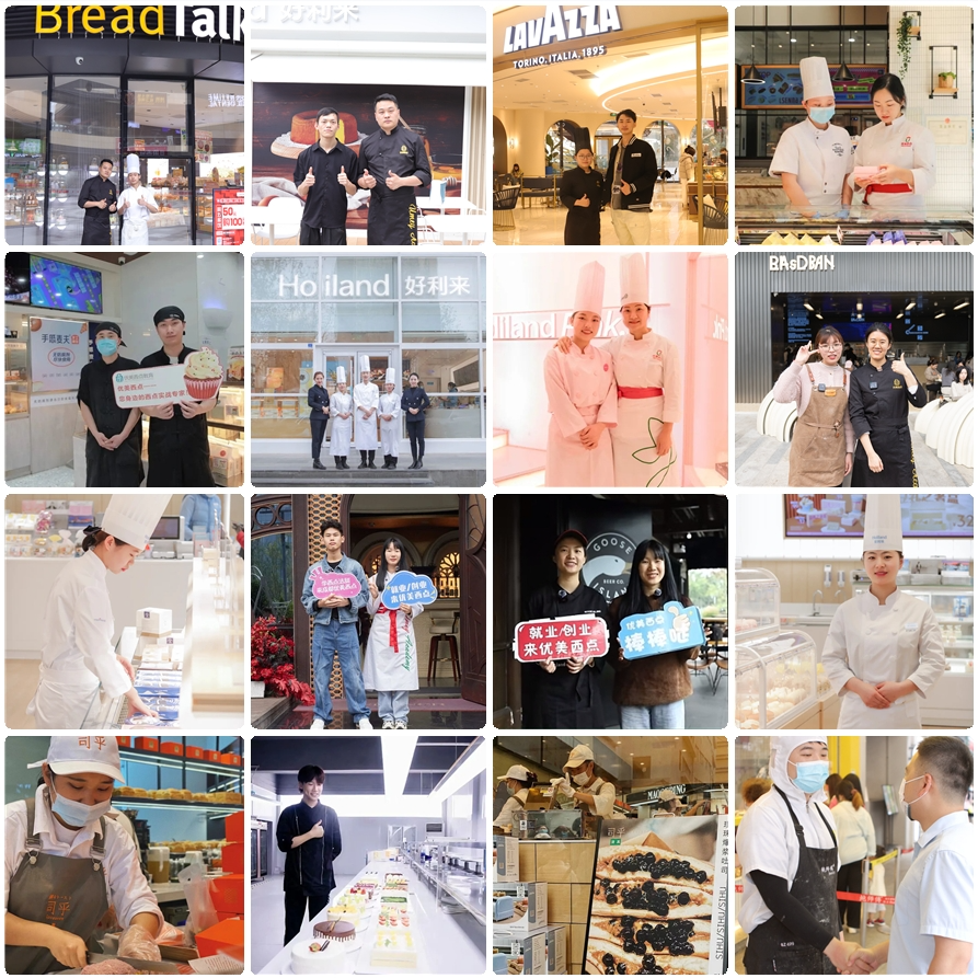 优美西点与近百家品牌连锁店进行校企合作,例如:仟吉、好利来、麦陌、奈雪的茶、盒马鲜生、85度C等。